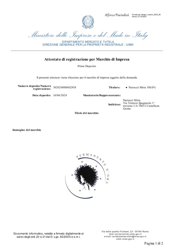 Sono emozionata nel condividere con voi una notizia che segna un traguardo importante nel mio percorso professionale: la Permanente D’Ora è ora un marchio registrato! Questo risultato rappresenta anni di dedizione, ricerca e passione per offrire una soluzione unica che va oltre la permanente tradizionale. Il mio obiettivo è sempre stato quello di creare un trattamento che trasformasse i capelli lisci in ricci definiti, duraturi e resistenti, ma che fosse adatto anche a chi, naturalmente riccio, ha perso la forma o il volume desiderati.