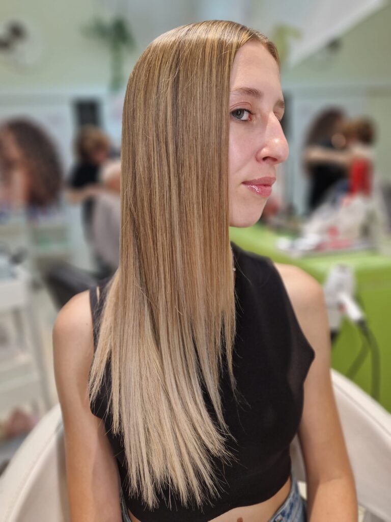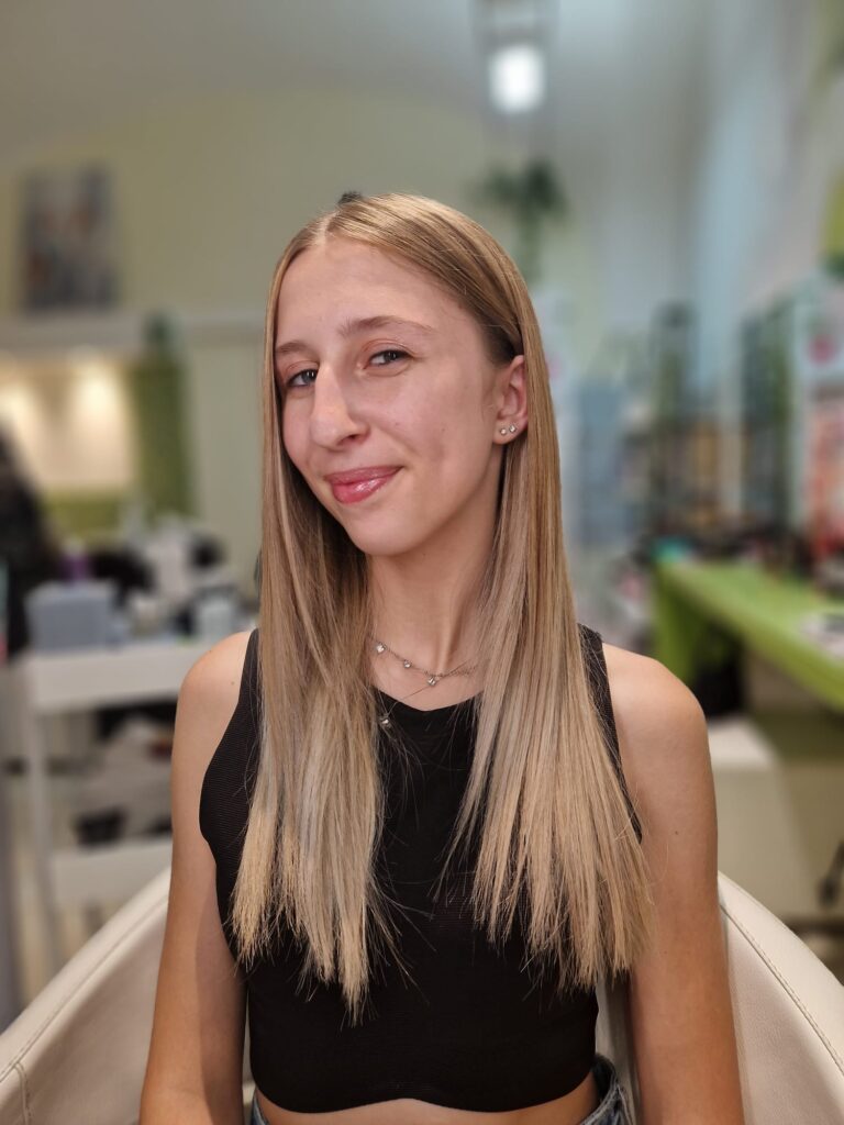 Mi sarebbe piaciuto poter aggiungere un mio tocco personale tagliando un po’ le lunghezze e creando delle onde che avrebbero incorniciato il suo viso minuto e dato volume, ma è giusto tenere conto anche di quelli che sono i vostri desideri e i vostri gusti. Sicuramente con il tempo potremo sperimentare ancora!