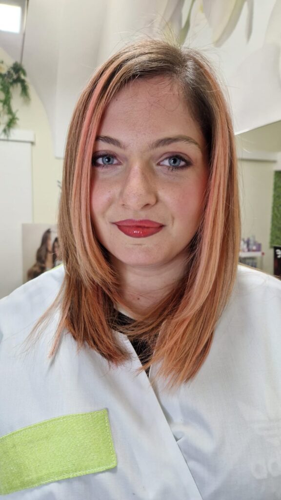E già, con la bellissima base chiara di capelli e con la tonalità dorata della sua pelle il nuovissimo rosa pesco, il colore Pantone di quest’anno,per lei è perfetto!