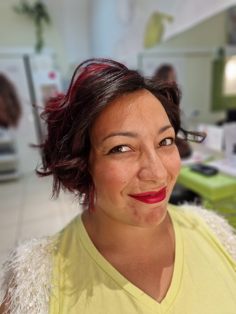 E quindi così è stato, schiariture bi colore rosso e viola, onde per un leggero movimento alla massa, un tocco di rossetto brillante lunga tenuta della nostra linea #evagardenmakeup ed il gioco è fatto…Mara ancora più bella ☺️