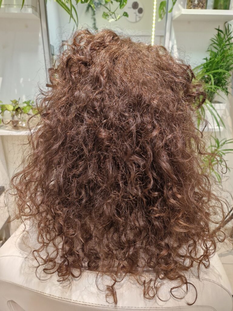 Chiaramente, ho capito subito che la prima cosa da fare era rimettere a posto il taglio che non dava nessun valore al suo riccio naturale e attraverso quello che era il suo desiderio ho ricreato un taglio su misura, che potesse aiutare i ricci a prendere vita ed evitare così di fare la permanente.